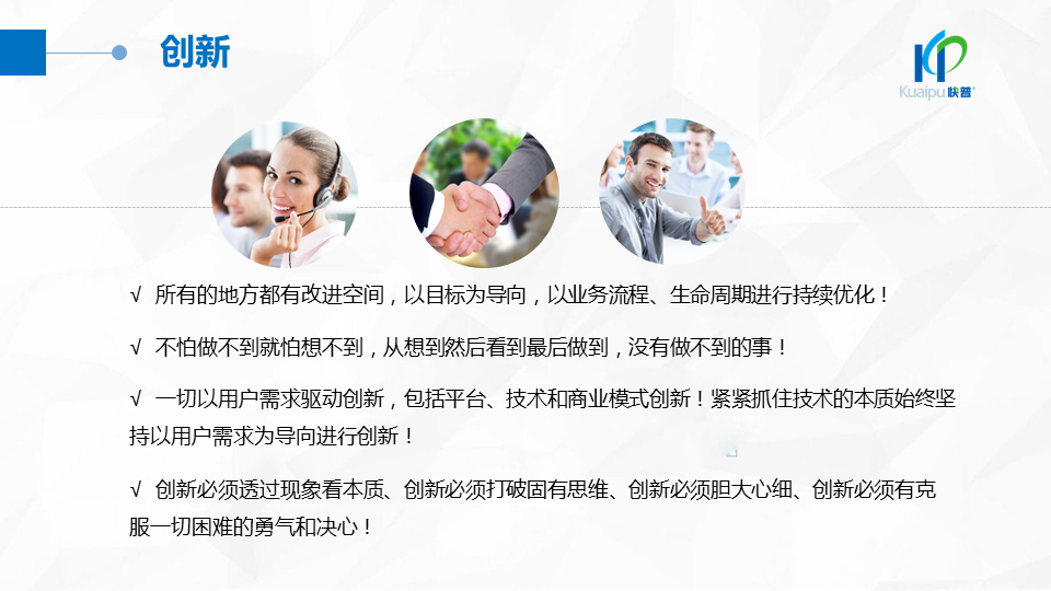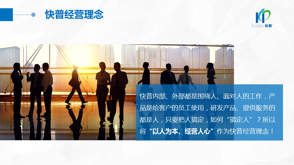 2018年9月,快普董事長(zhǎng)溫祝平先生發(fā)表《快普經(jīng)營(yíng)哲學(xué)2.0》,指出“以人為本、經(jīng)營(yíng)人心”的經(jīng)營(yíng)理念,強(qiáng)調(diào)進(jìn)一步建設(shè)“幸福企業(yè)文化”的重要性。